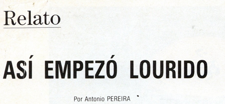 - ItemAsí empezó Lourido [Blanco y negro](Fundación Antonio Pereira, ) Pereira, Antonio, 1923-2009; Gutiérrez Más, JulioRelato de Antonio Pereira publicado en «Blanco y negro»